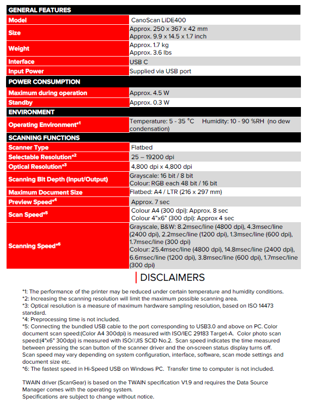 Canon CanoScan LiDE400 A4 Flatbed Scanner